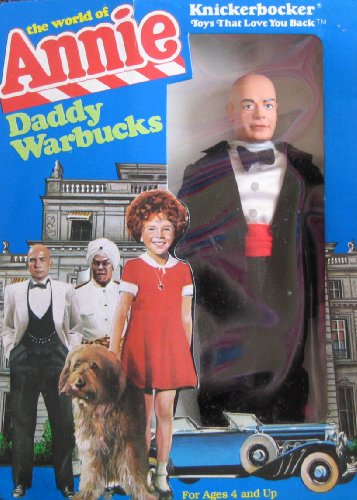 Posted by V Small at 9:32 AMThe World of Annie, Daddy Warbucks is a 1982 Knickerbocker Toy Co production, made in Hong Kong. Includes: Daddy Warbucks Doll approx. 6.5" tall w/black velvety Tuxedo, white Shirt w/silver dot "buttons" in front, a black Bow Tie, red Cummerbund & a pair of black Shoes. Sizes, colors, styles, & info may vary. For Ages 4+ Years. CAUTION: Small Parts. From the 1982 Columbia Pictures Movie, "The Wor... Read More at Amazon.com 00